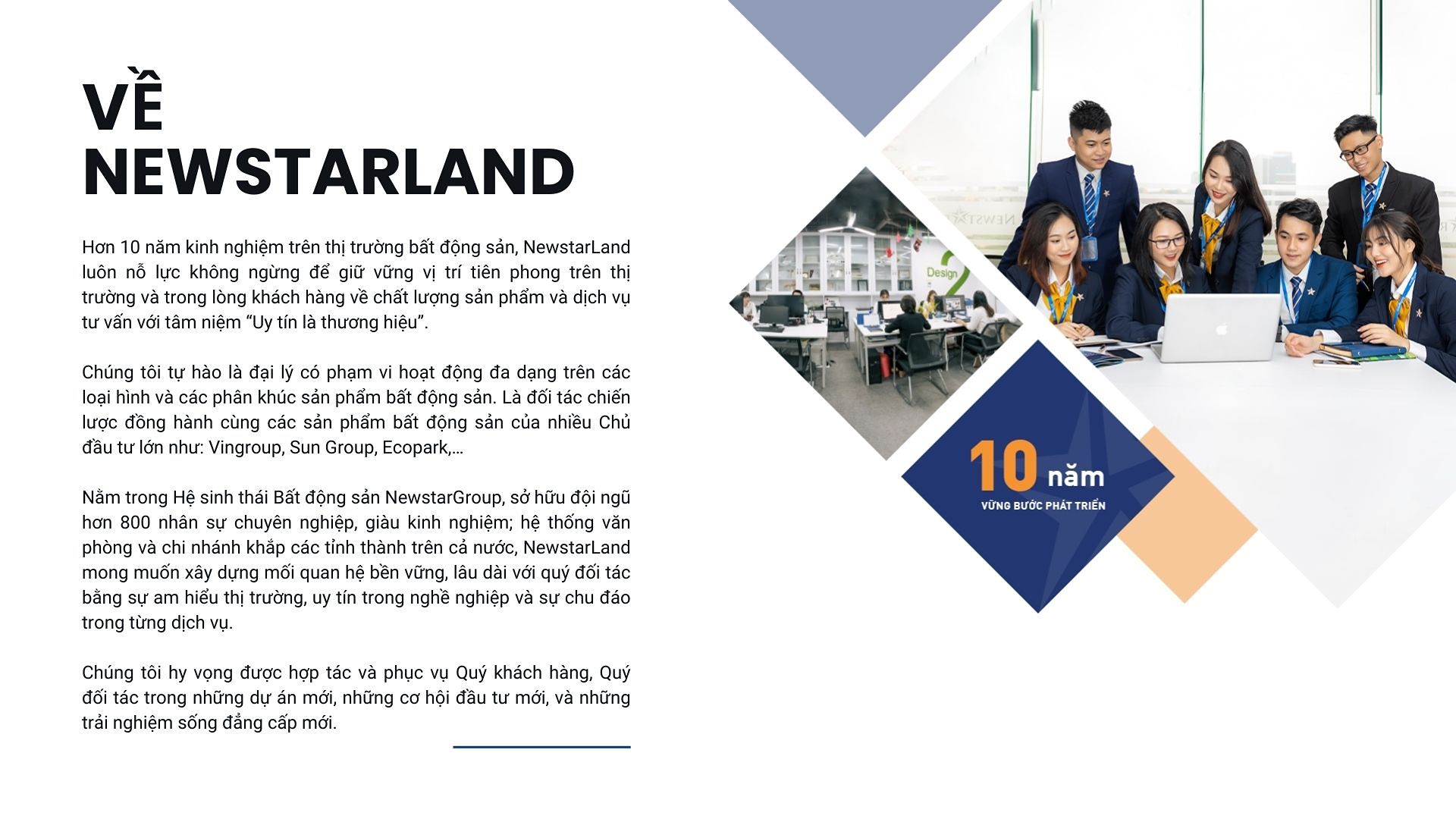 Là đơn vị phân phối và tư vấn bất động sản hàng đầu, hợp tác chiến lược cùng nhiều Chủ đầu tư lớn như Vingroup, Sun Group, Ecopark…, NewstarLand sở hữu hệ sinh thái phát triển mạnh mẽ, đội ngũ chuyên nghiệp, quy trình bài bản và nền tảng vững chắc để bạn bứt phá sự nghiệp.